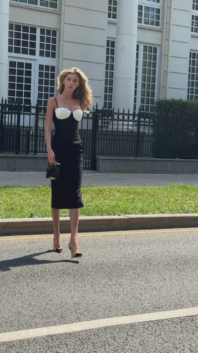 This striking and seductive midi dress in a vibrant red hue is designed to capture attention. The bustier bodice with delicate draping highlights the bust and accentuates the waist, creating an elegant silhouette. The flowing satin skirt falls freely and moves beautifully with every step. The midi length adds sophistication and versatility, perfect for parties, dates, or social events. This dress is for those who embrace bold classics and love to be the center of attention.