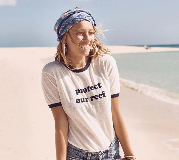 Being a brand that calls Byron Bay home, we cherish the ocean. The Australian Marine Conservation Society works to reduce fatal coral bleaching and protect the Great Barrier Reef from land erosion, industrialisation and sediment runoff. Since 2017, Auguste has supported the AMCS through our partnership with 1% For The Planet, along with our Protect Our Reef tee. 100% of the retail price was donated to AMCS.